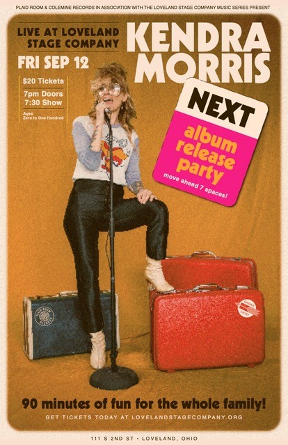 Catch a 90 minute set from Kendra and the band in the intimate Loveland Stage Company theater. All ages welcome. Doors open at 7:00 and the show begins at 7:30. Tickets are $20.00 and available at lovelandstagecompany.org/tickets.